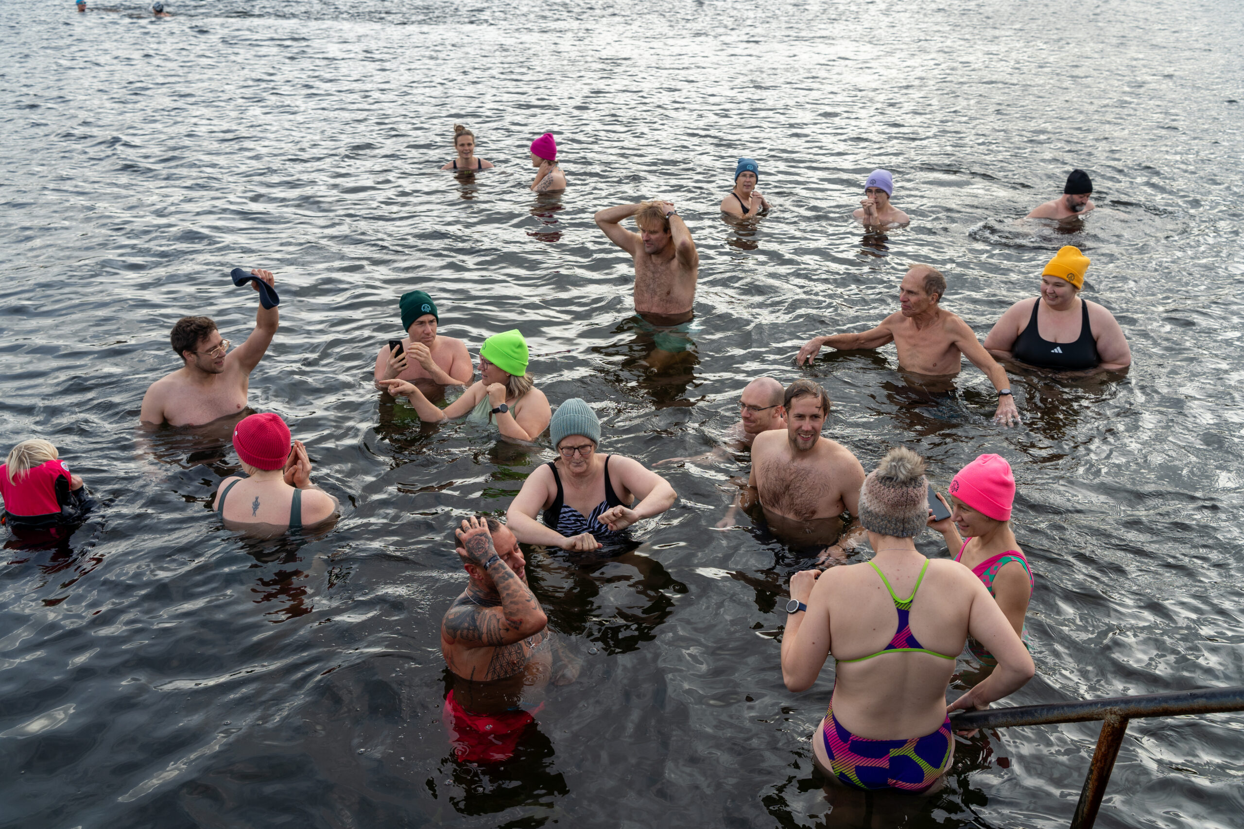 Heute haben sich 165 mutige Eisbademeisters in das 11,4 Grad kalte Wasser gewagt – bei 11 Grad Lufttemperatur.